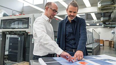 Wir kennen den Charakter von Papier, das Zusammenspiel von Farben, Lacken und Veredelungsformen – für Drucksorten mit Charakter.